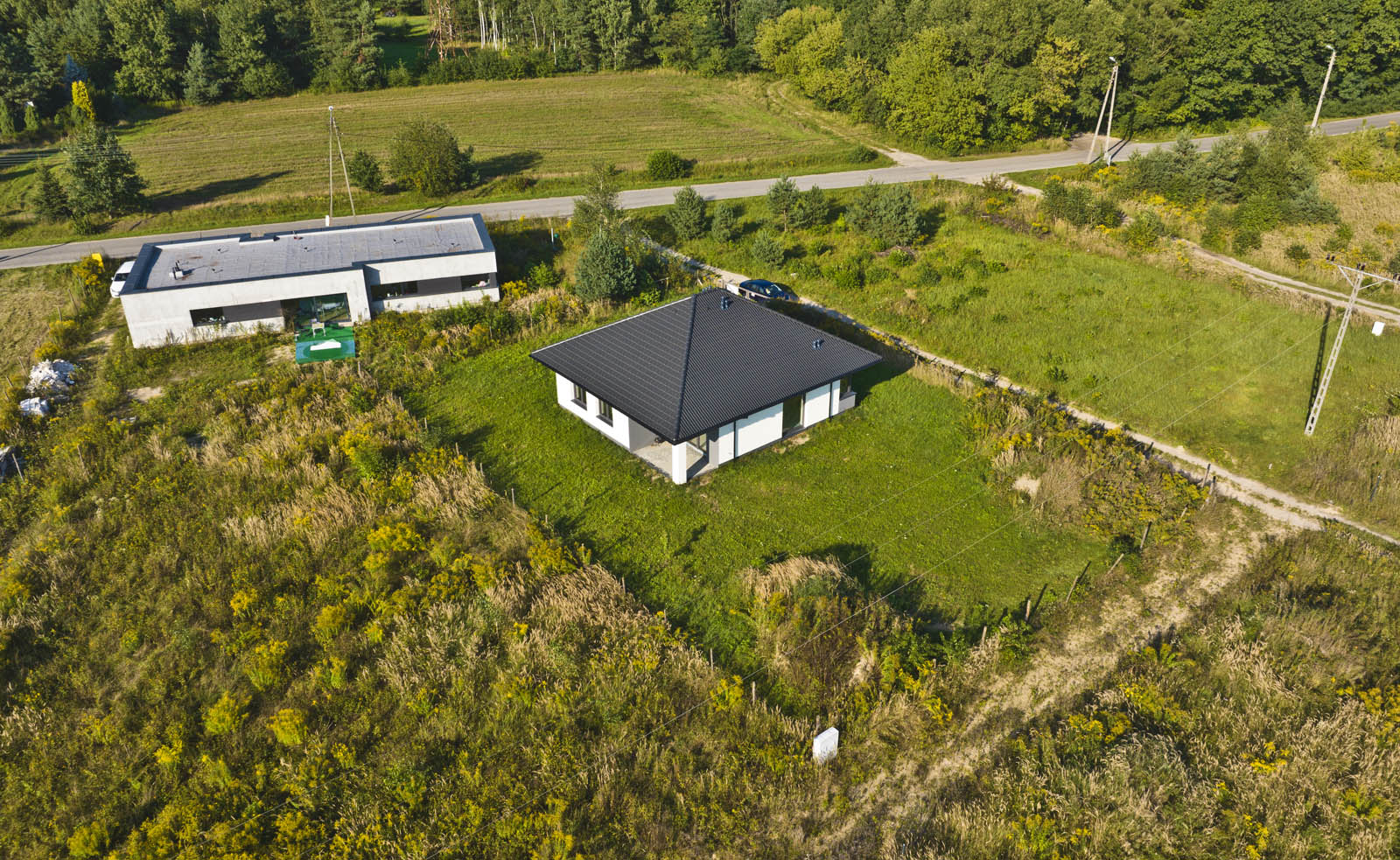 Instalacje: wodno-kanalizacyjna, elektryczna, przyłącze prądu, centralne ogrzewanie (pompa ciepła + ogrzewanie podłogowe)