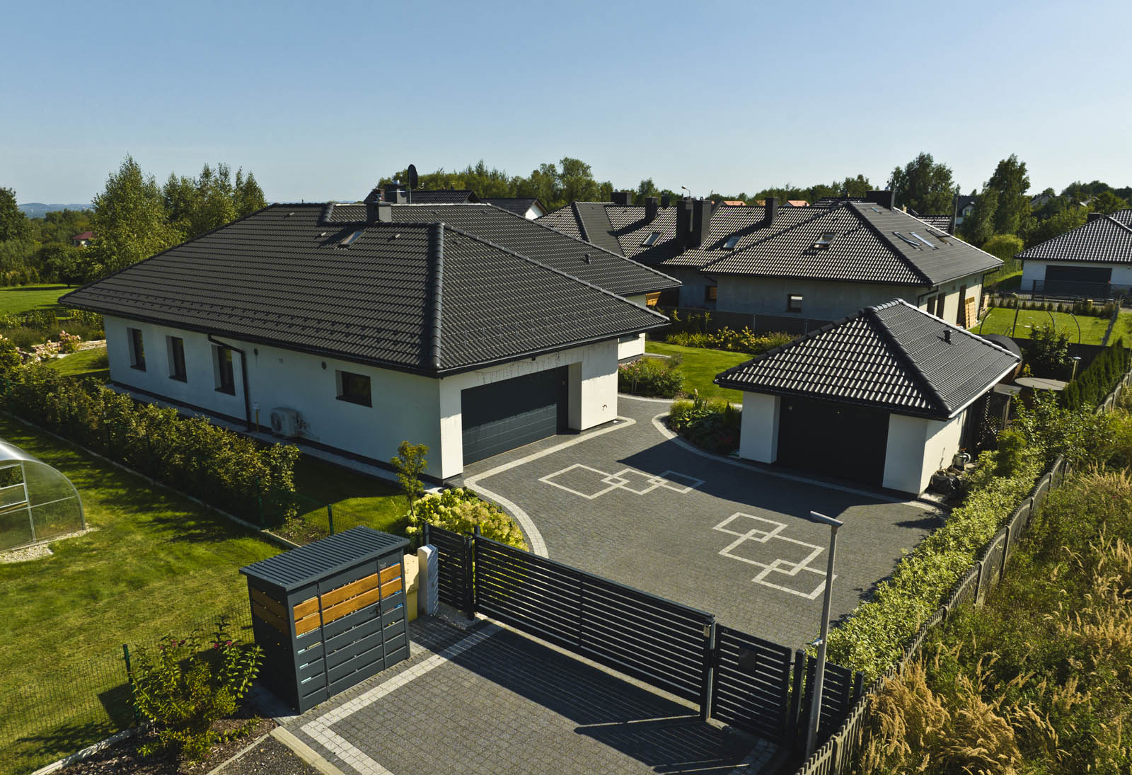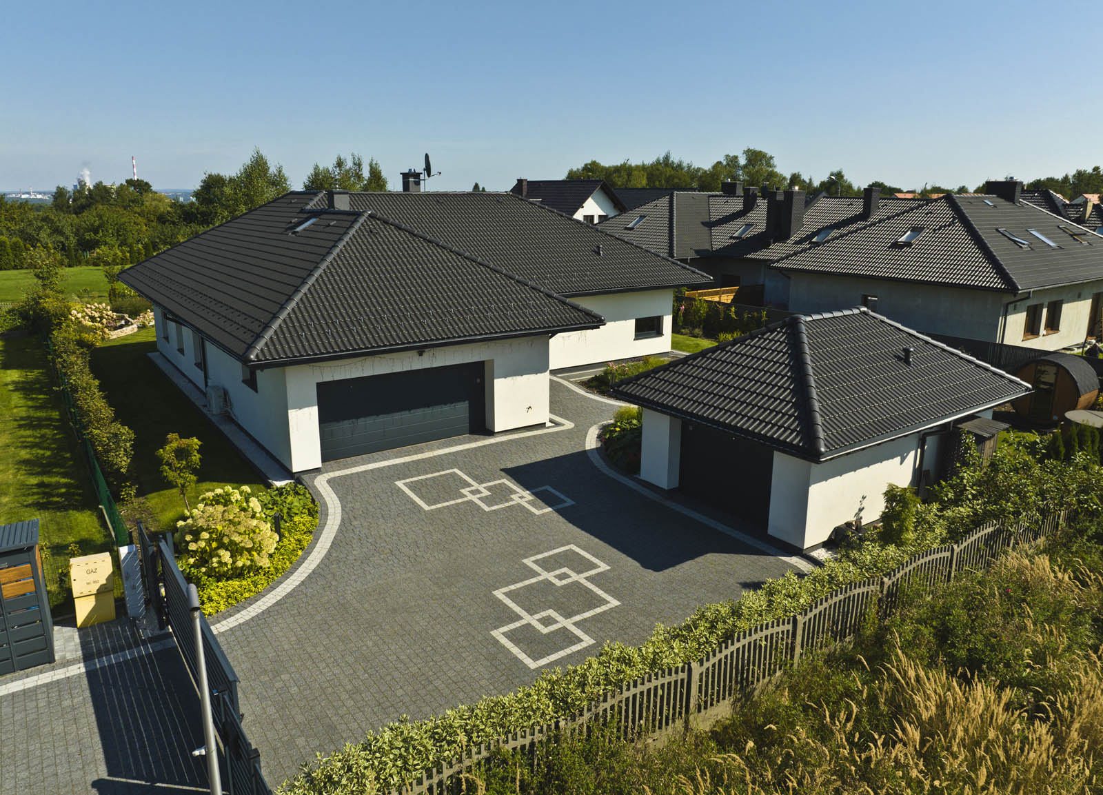 Stolarka: okna aluminiowe (ciepły montaż) Oknoplus, HST, rolety elektryczne, brama Hormann, drzwi Delta