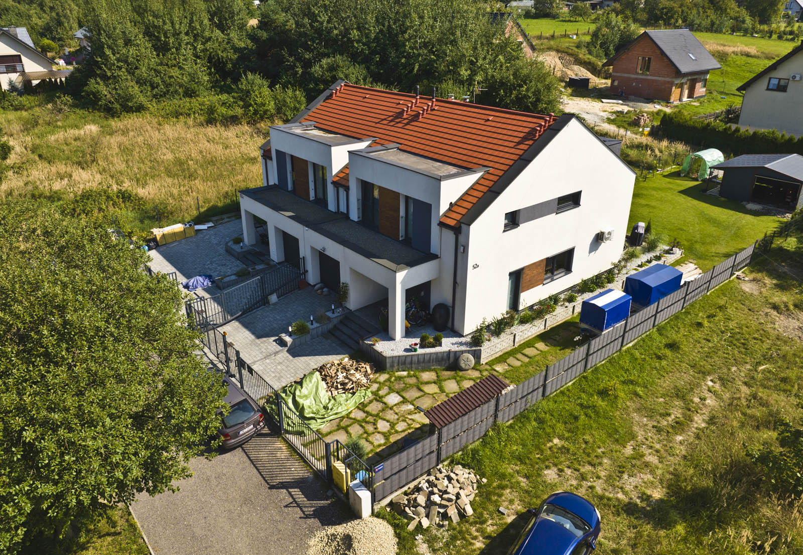 Realizacja w oparciu o projekt indywidualny, obejmująca pełen proces formalny oraz budowę dwóch budynków do stanu surowego zamkniętego z wykończoną elewacją i zagospodarowaniem terenu.