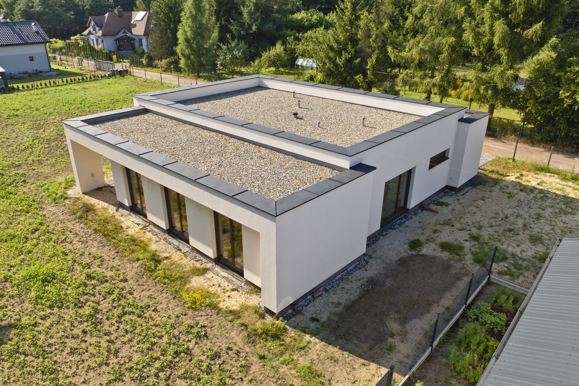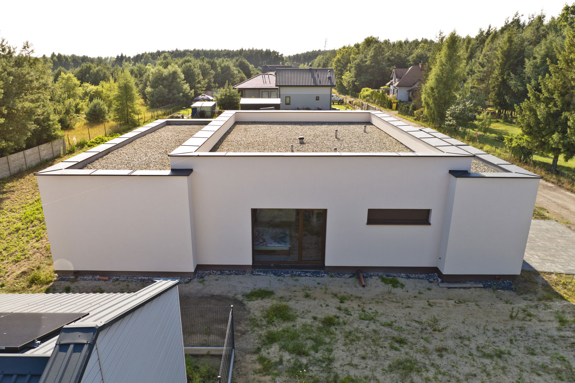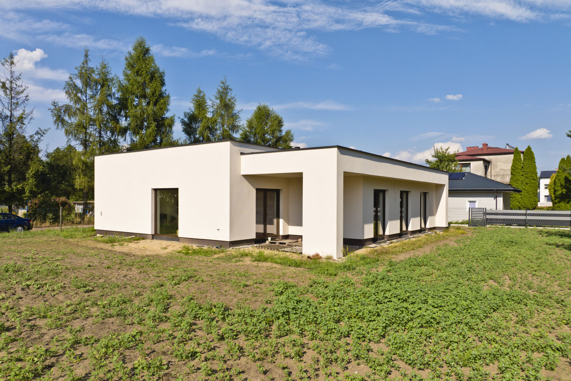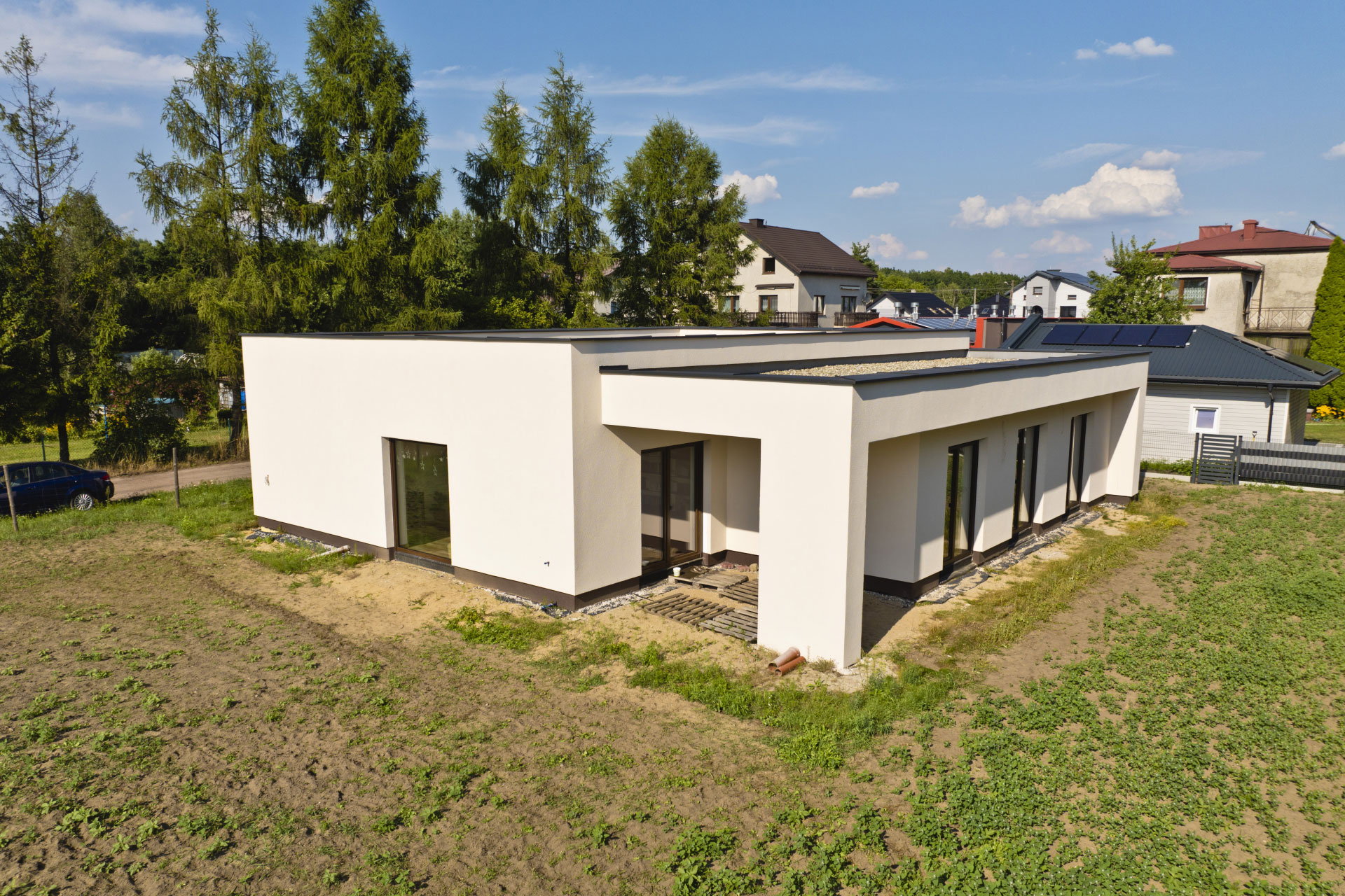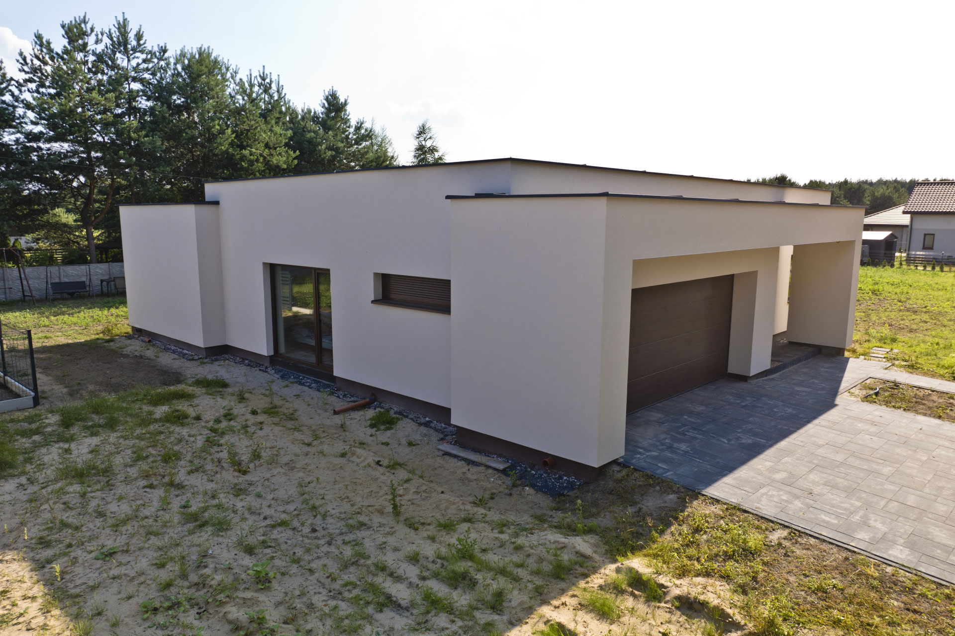 Realizacja obejmowała pełne formalności budowlane oraz wykonanie domu do stanu deweloperskiego.
