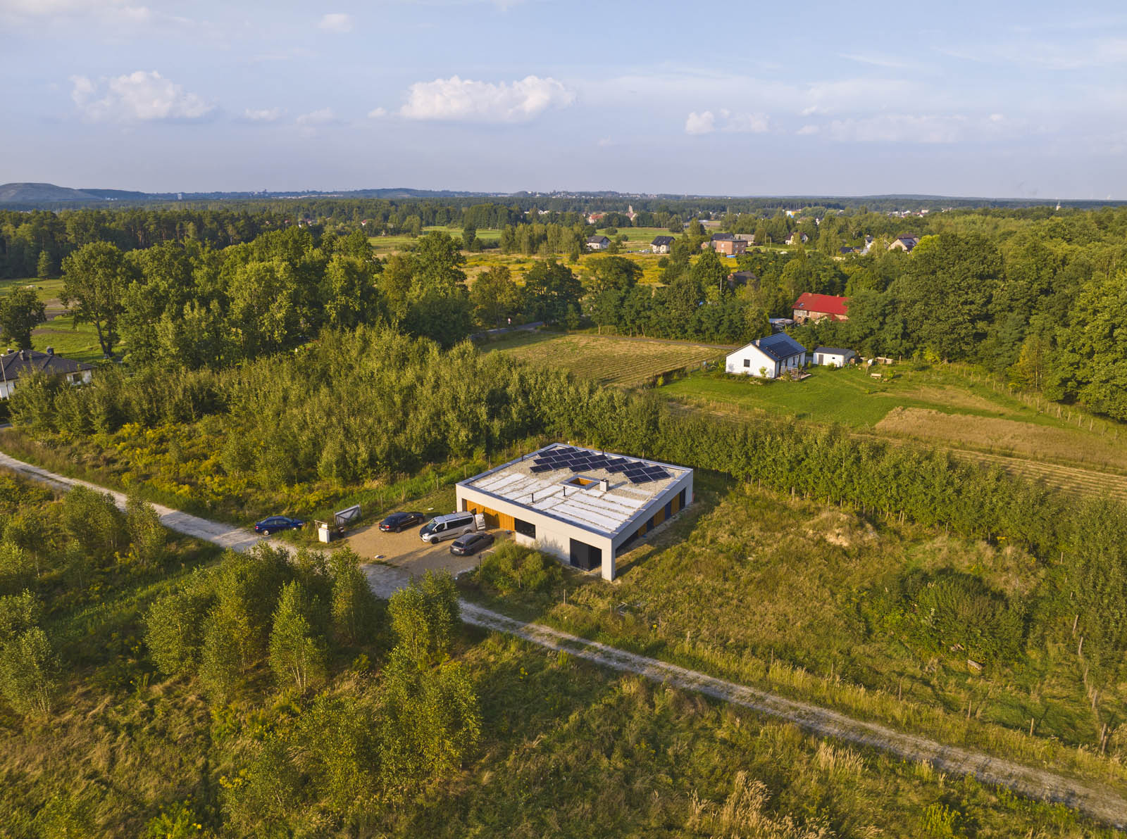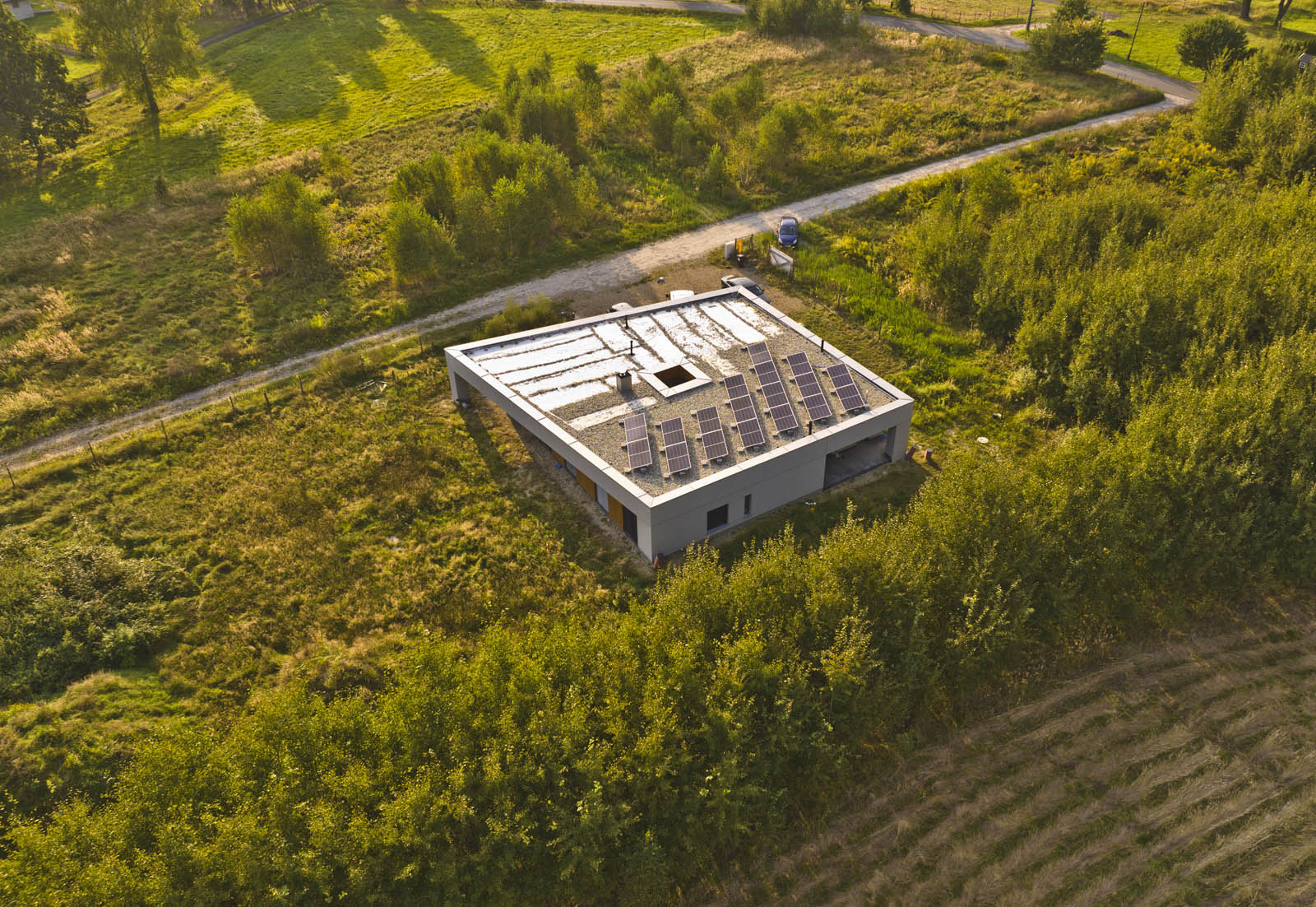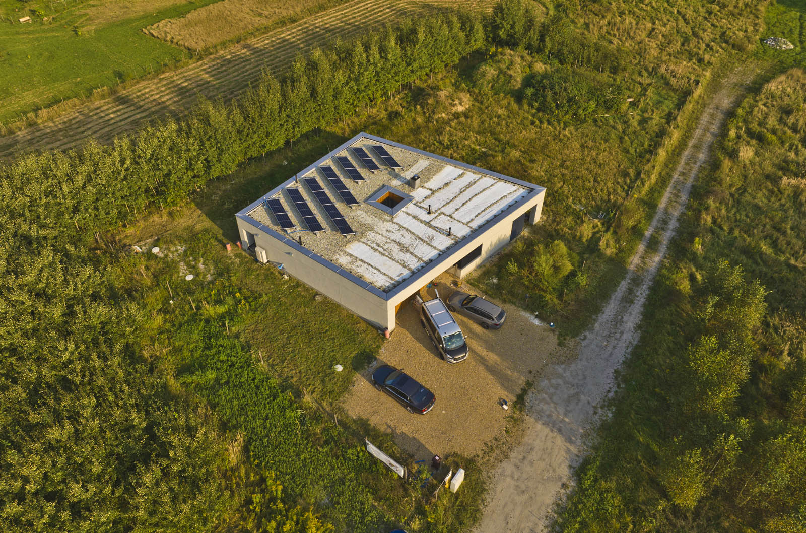 Instalacje: wodno-kanalizacyjna, elektryczna, przyłącze prądu, centralnego ogrzewania (pompa ciepła + ogrzewanie podłogowe), wentylacja mechaniczna