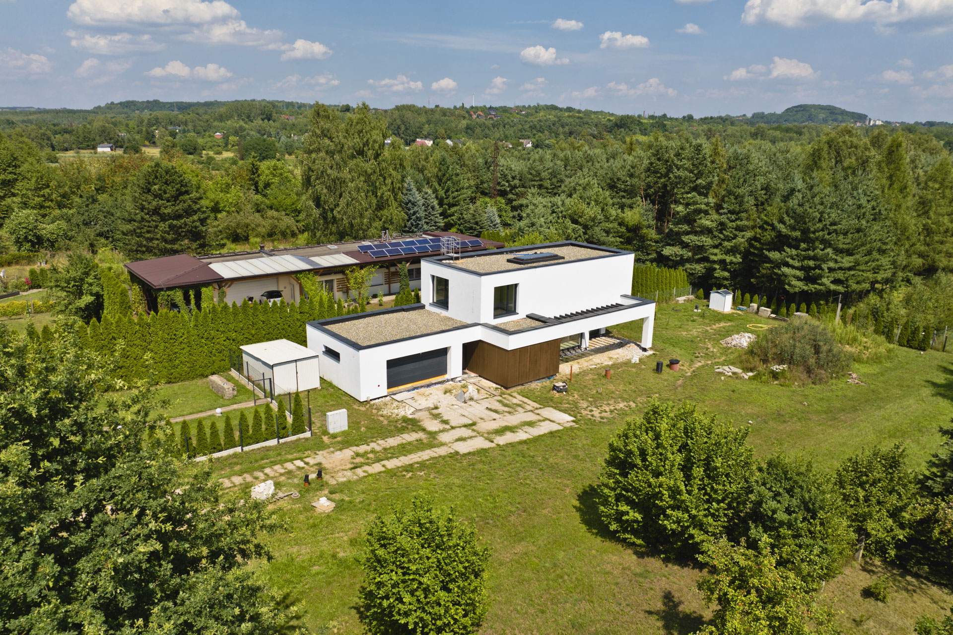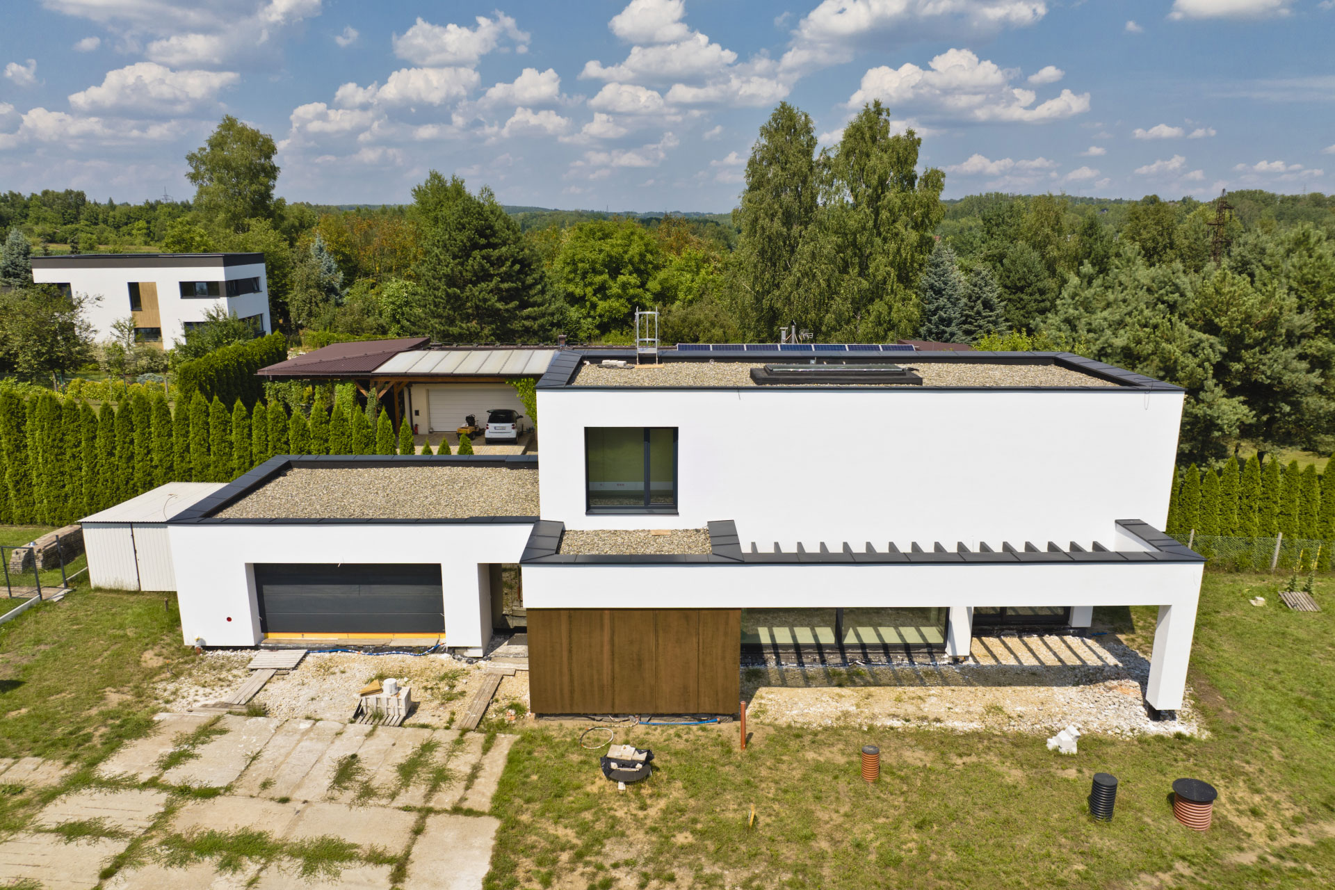 Realizacja obejmowała pełne formalności budowlane wraz z uzyskaniem pozwolenia na budowę oraz wykonanie domu do stanu surowego otwartego.
